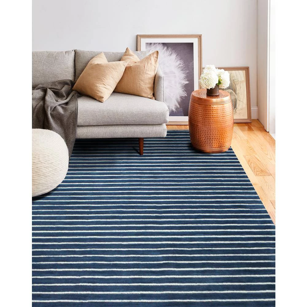 Enter a world of tranquility with soft, soothing patterns, enhanced by subtle hombre pleasing palette of colors mingle in harmony among gentle linear patterns. Sturdy, reinforced cotton canvas backing protects the carpet and add an extra layer of protection. Best for indoor use in the living room. Bring any room to life this loomed striped contemporary area rug.