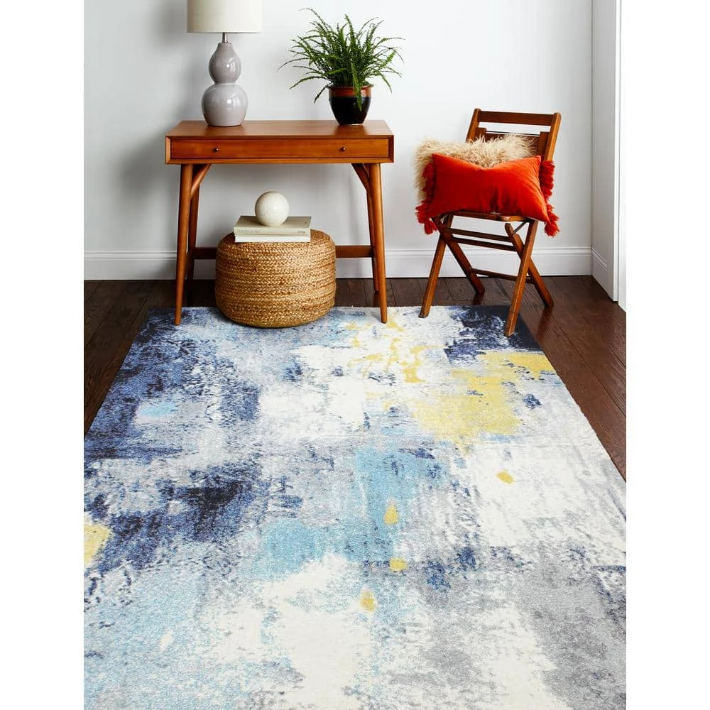 Everek Ivory/Blue 5 ft. x 8 ft. (5′ x 7’6″) Abstract Transitional Area Rug by BASHIAN
