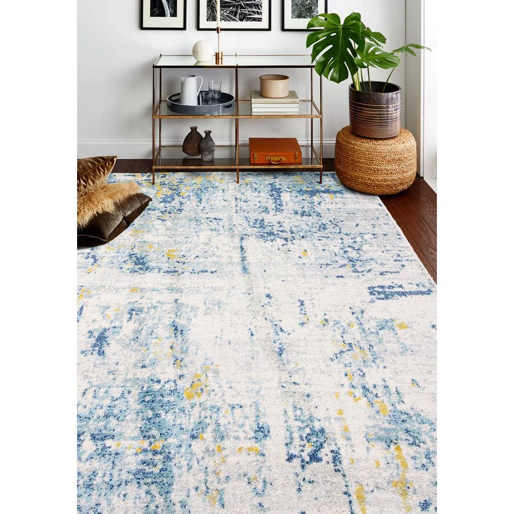 Everek Ivory/Blue 8 ft. x 10 ft. (7’6″ x 9’6″) Abstract Transitional Area Rug by BASHIAN