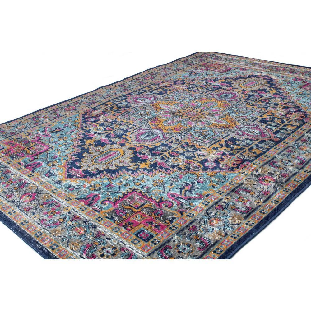 Help transform your room with rich, saturated colors in vintage patterns from a bygone era. Subtle striations with a thin distressed pile, showing gentle signs of wear, give these pieces an authentic antique appearance. Best for indoor use in the living room. Bring any room to life this woven oriental transitional area rug.