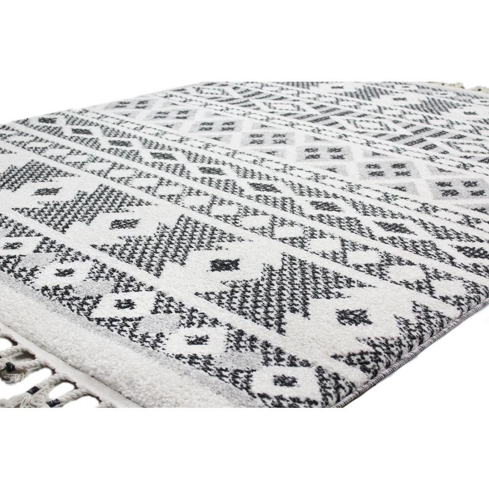Infuse some fun into your room with these bold, contemporary patterns in cool, black and white shades. The extra soft, textured pile transforms your senses as if you are walking on air. Best for indoor use in the living room. Bring any room to life this woven geometric contemporary area rug.