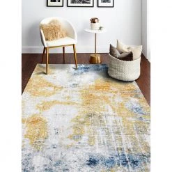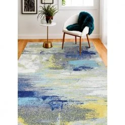 Everek Ivory/Blue 10 ft. x 14 ft. (9’6″ x 13’6″) Abstract Transitional Area Rug by BASHIAN