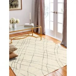 Everek Ivory/Blue 10 ft. x 14 ft. (9’6″ x 13’6″) Abstract Transitional Area Rug by BASHIAN