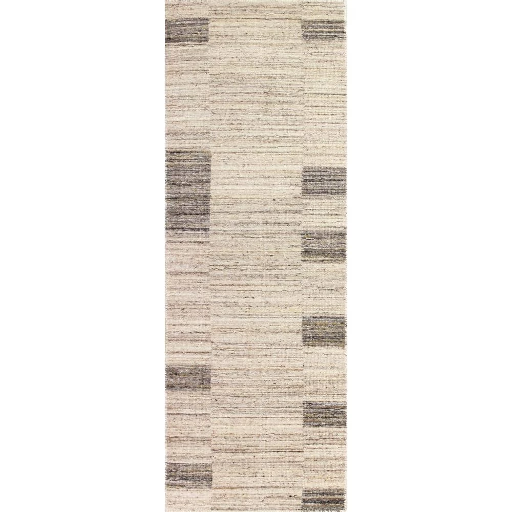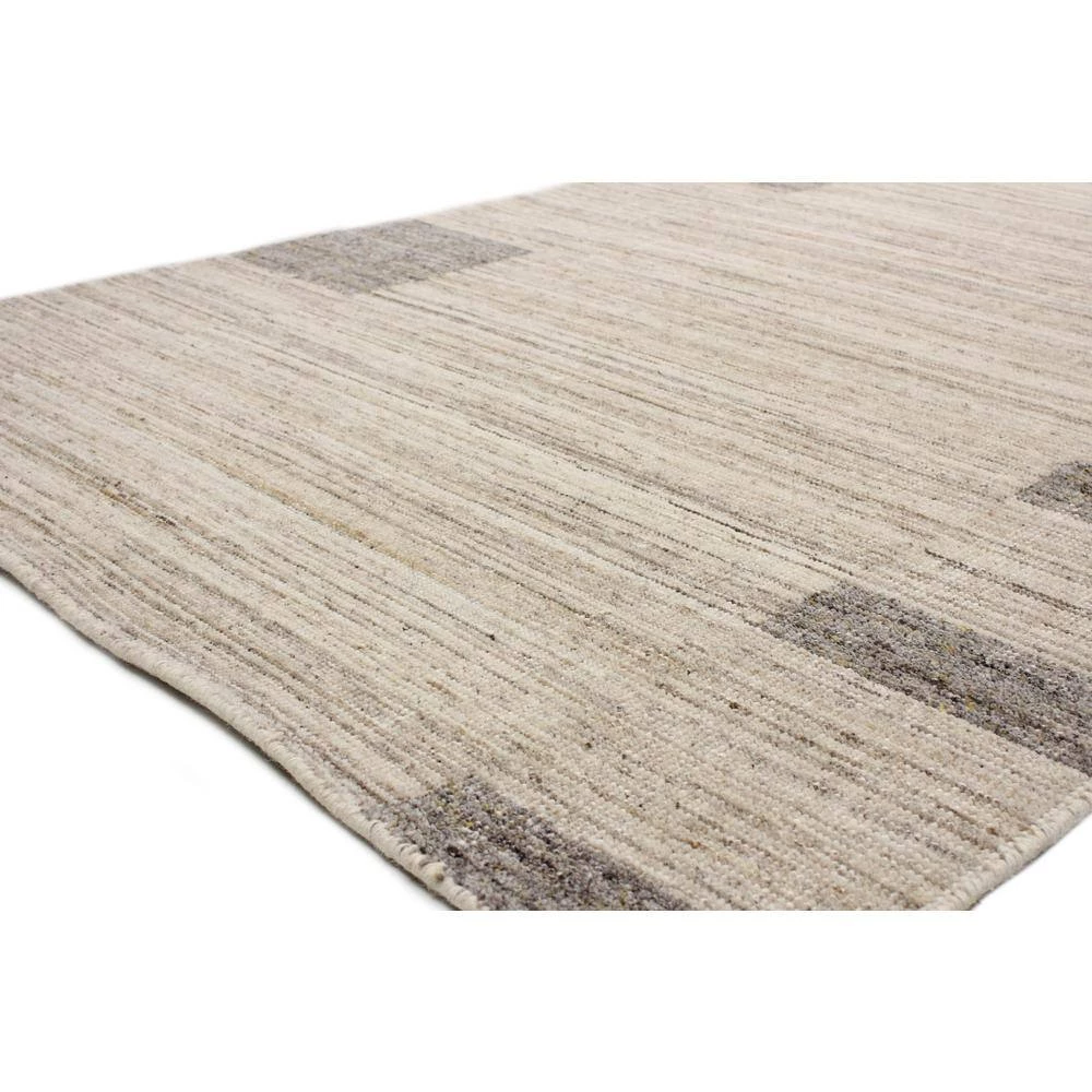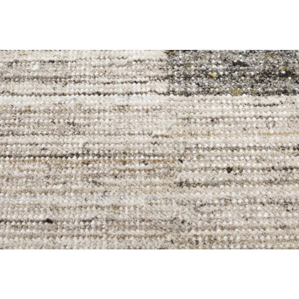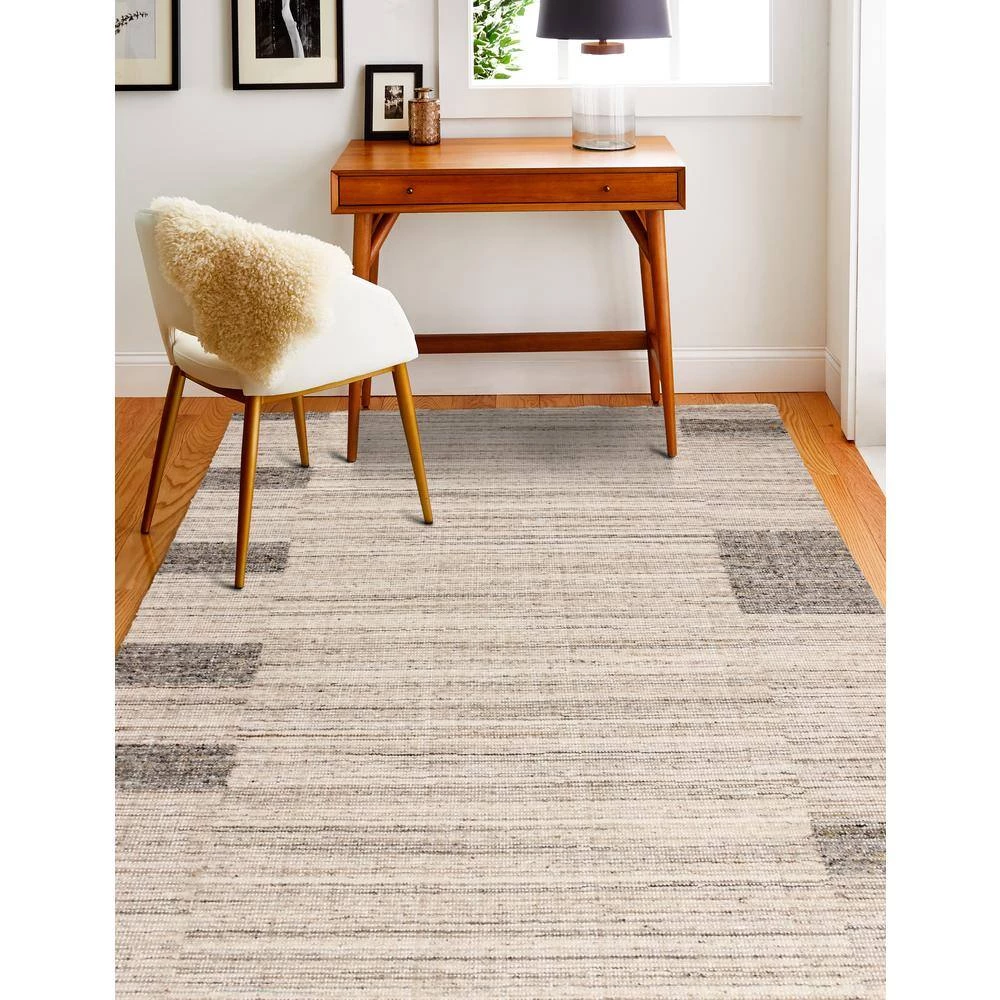 Add flexibility to your decor with these solid, all wool hand loomed treasures. Subtle striations of harmonious, soothing colors, woven on a distressed low pile, gives your decor an added dimension. Gentle signs of wear are nuanced throughout for added texture.” Best for indoor use in the living room. Bring any room to life this loomed geometric contemporary area rug.