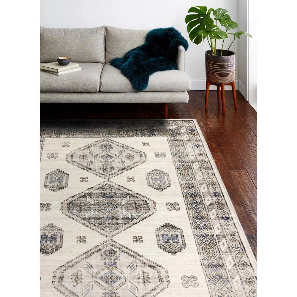 Infuse interest to your room with bold, graphic geometric patterns in subdued colors. While the patterns are eye-catching, the neutral colors are made to work with your room decor. Soft, shimmering pile of polypropylene with subtle striations, adds another layer of interest. Best for indoor use in the living room. Bring any room to life this woven geometric transitional area rug.