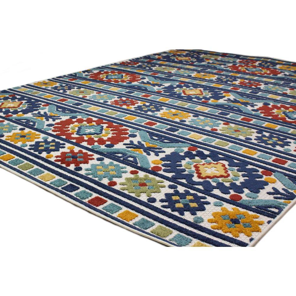 Enjoy the great outdoors in style with these colorful designs in a textured, plush pile. These specially treated polypropylene rugs are UV protected. Water-resistant and suitable for indoor or outdoor use.